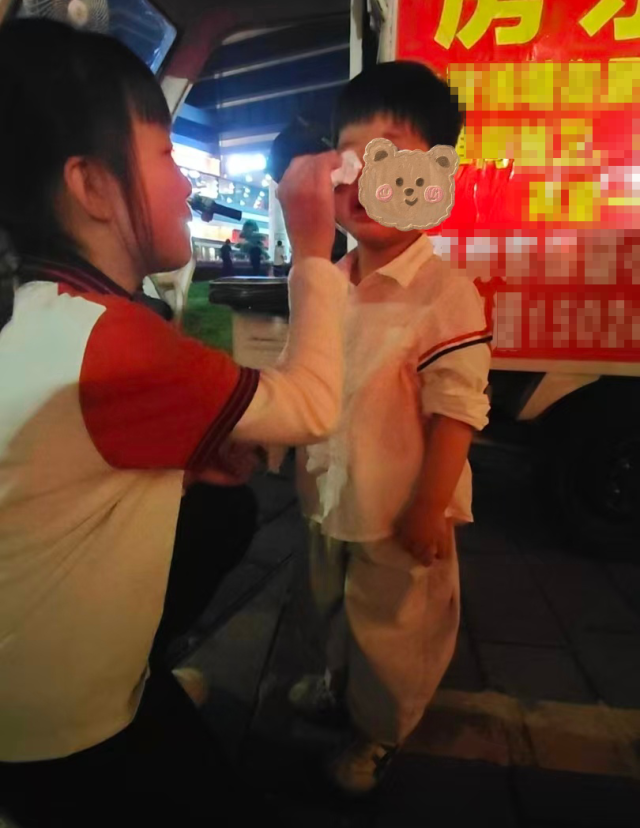 恭候的本事里,母女俩一直看护在小男孩身边。吴子宜一直牢牢地拉着小男孩的手,一会儿蹲着和他言语,一会儿把他抱到商贩的车座上安危他。