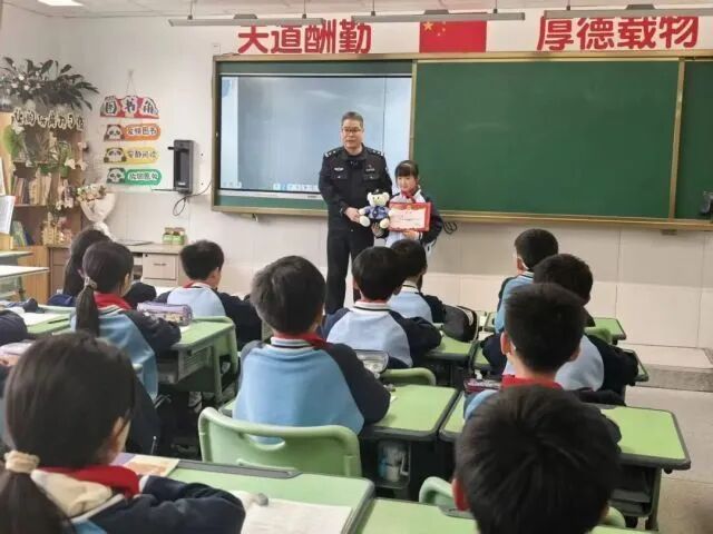 为了赏赐吴子宜的机智与爱心,宁围派出所民警专门来到学校,为她颁发了“机智勇敢好少年”奖状和窥探公仔,全班同学报以热烈掌声。