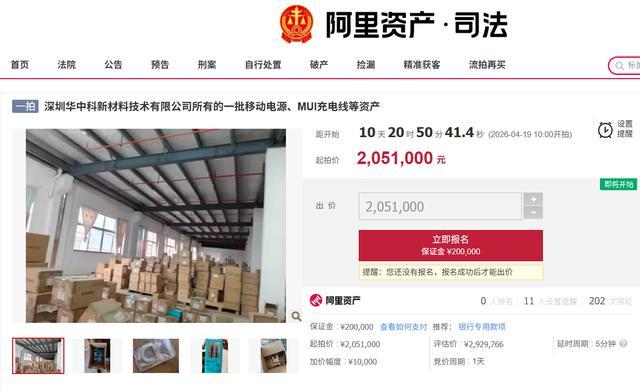 IT之家 4 月 8 日音信,阿里财富划定拍卖平台裸露,深圳华中科新材料技艺有限公司名下的一批充电宝、充电线等财富,将于 4 月 19 日开拍,起拍价 205.1 万元。该公司的大推进恰是深圳罗马仕科技有限公司,被拍卖的充电宝等财富均为罗马仕品牌。