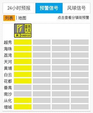 扫尾5日17时15分,越秀、海珠、荔湾、河汉、黄埔、白云、花王人、从化、增城已发出雷雨大风黄色预警信号。